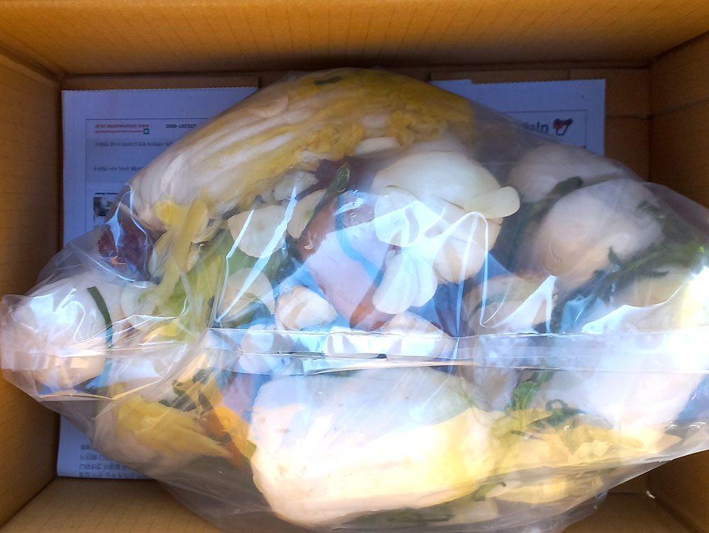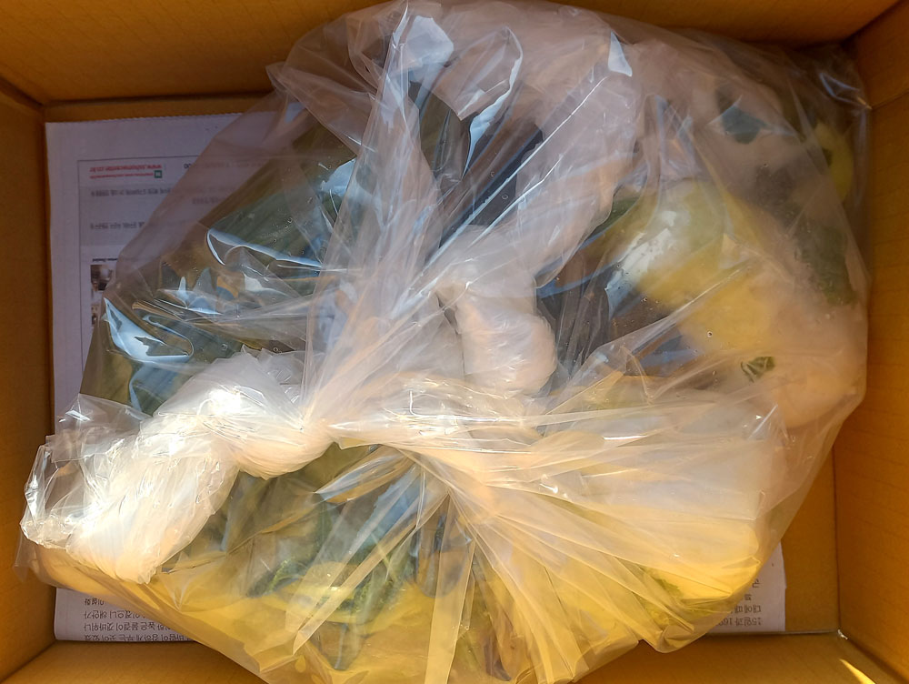 - 물의 양은 동치미 2.5kg / 2리터, 동치미 4.5kg /4리터 정도 이고, 용기가 없을 때는 비닐봉지 채로 물을 넣고 묶어 두셔도 됩니다.