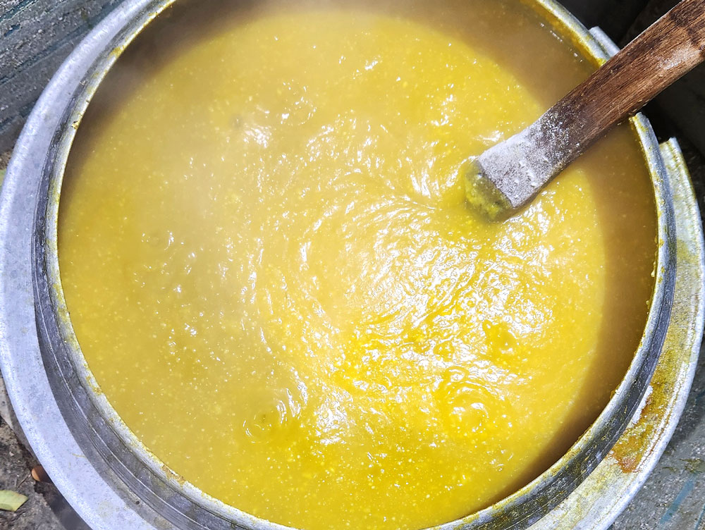 2. 손질된 호박과 불린 강낭콩, 토종 물고구마의 껍질을 손질하여 깍뚝 썰어 씻은 쌀, 불린 강낭콩, 손질된 호박을 함께 압력밥솥에 물 1.5리터에 약간의 소금과 설탕을 넣은 후 밥하는 것처럼 취사하시면 됩니다. 너무 오래 가열하시면 바닥이 눌러 붙을 수 있으니 유념하시고 전기 밥솥을 사용하시는 분은 요리하시기 좋을 듯 합니다.