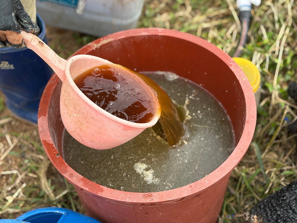 △ 청갓 김치를 버무리는 사진