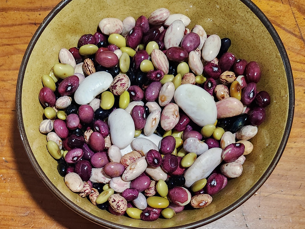 혼합(얼룩 강낭콩,붉은 강낭콩,검정 강낭콩,밤콩)과 푸른콩이 섞여갑니다.