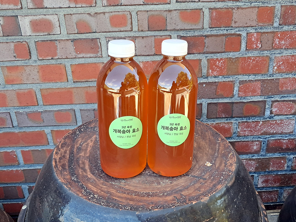 그렇게 설탕과 1:1 비율로 섞은 후, 항아리에 90일 가량 재워뒀다 개복숭아를 건지고, 3년이상 숙성시켜 판매합니다.