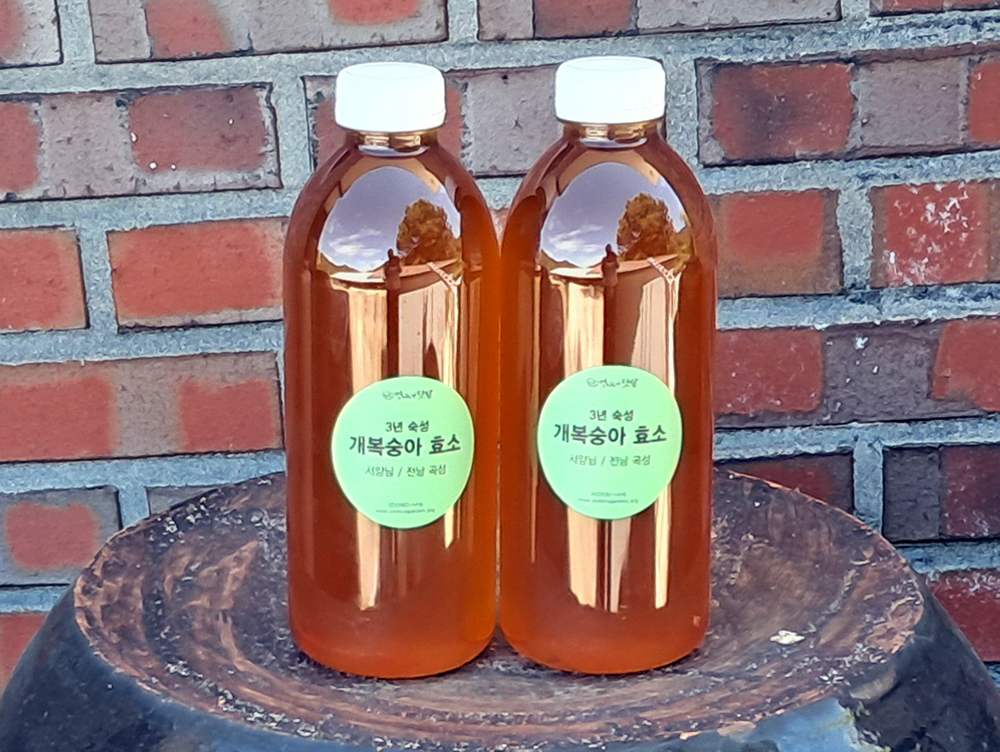 발효액은 오래 숙성될수록 좋답니다. 저희 집 개복숭아는 따로 나무를 심어 관리한 것이 아니고 높은 고지에서 자연으로 자라난 야생 개복숭아입니다. 따로 퇴비나 농약은 하지 않습니다.봄에는 풀들이 많이 자라는 시기인데, 그때 제초제 약은 일절 쓰지 않고 예초기로 직접 풀을 베어 작업을 하기때문에 환경에도 좋고, 사람 몸에도 좋게 생산하고 있습니다.매년 야생 개복숭아 발효액을 만드는 시기는 7월 말 경입니다. 그때 개복숭아가 빨갛게 익기 시작합니다. 개복숭아를 잔털때문에 수확할때는 완전 무장으로 하고 수확합니다.