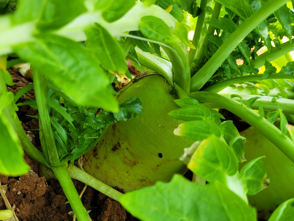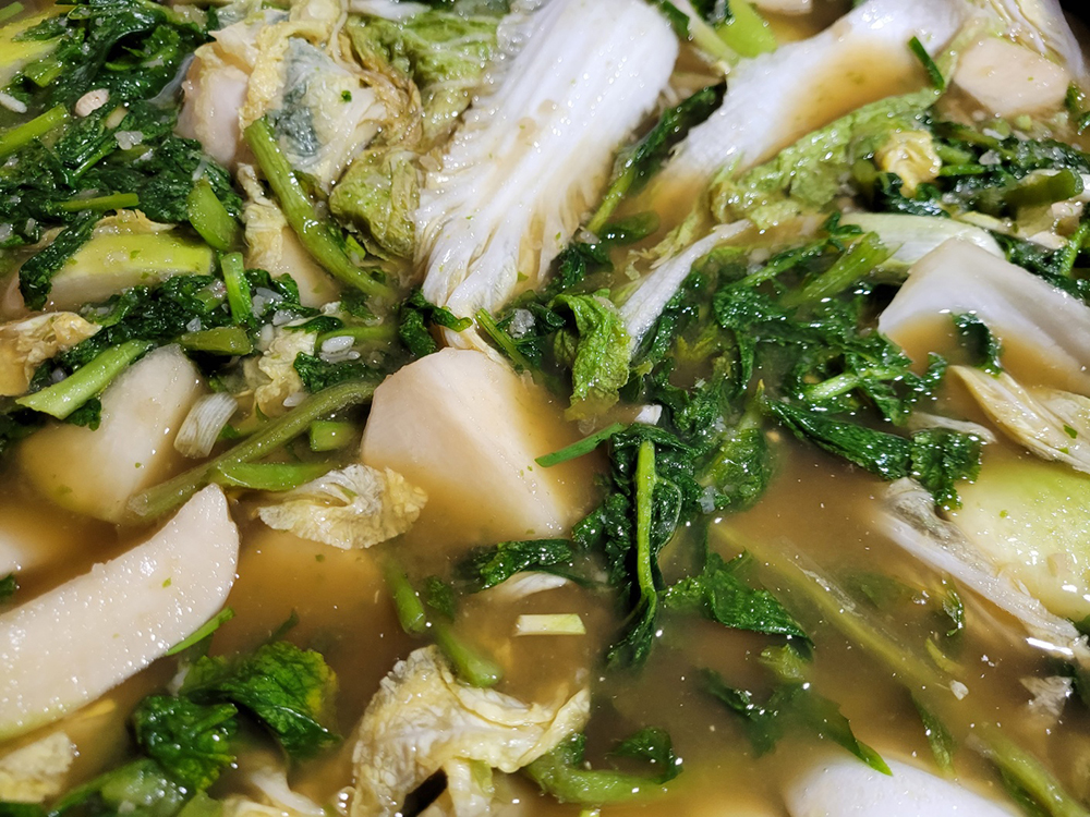 직접 재배한 신선한 겨울 무를 이용해 담은 시원하고 아삭한 무 물 김치입니다