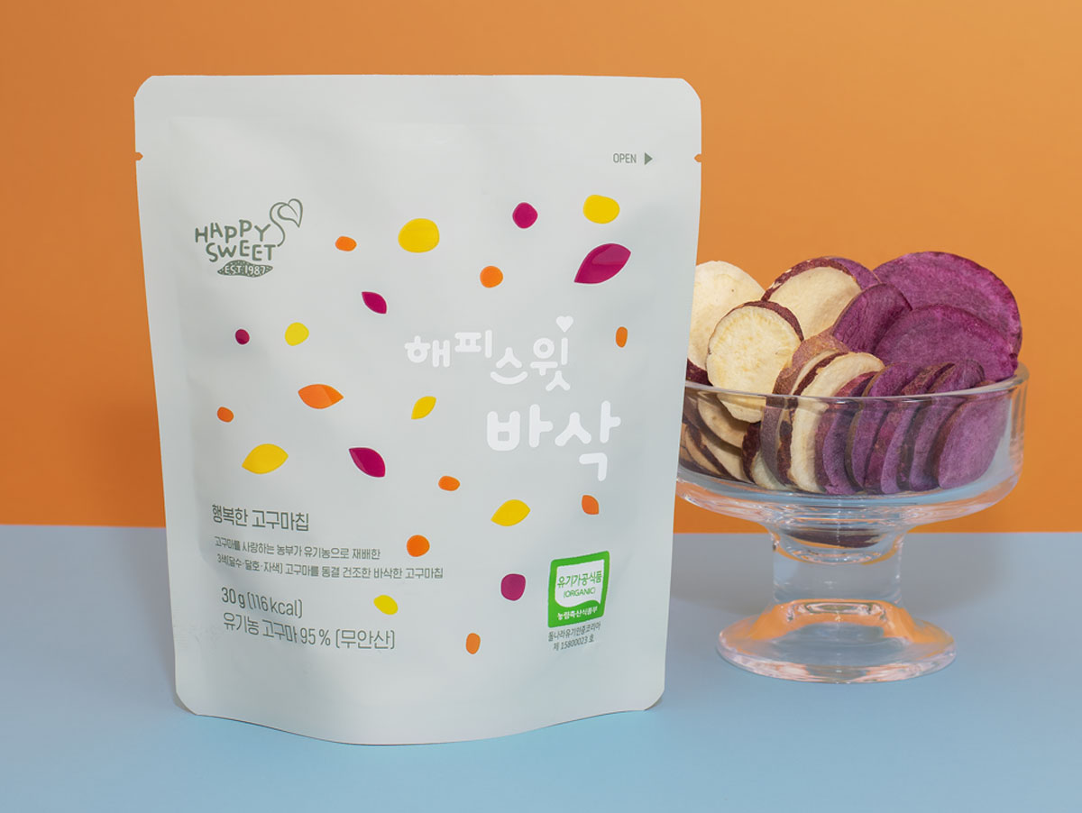 행복한고구마 농장의 달수, 달호, 자색 유기농 고구마를 기름 없이 동결건조해 만든 프리미엄 고구마칩입니다. 유기농 설탕과 국내산 정제염, 비타민 C, 유기농 인증을 받은 국내산 고구마로 만들었습니다. 담백하고 바삭한 식감은 물론, 세 가지 고구마의 고운 색감으로 요거트와 제과·제빵 토핑에 더욱 잘 어울립니다.