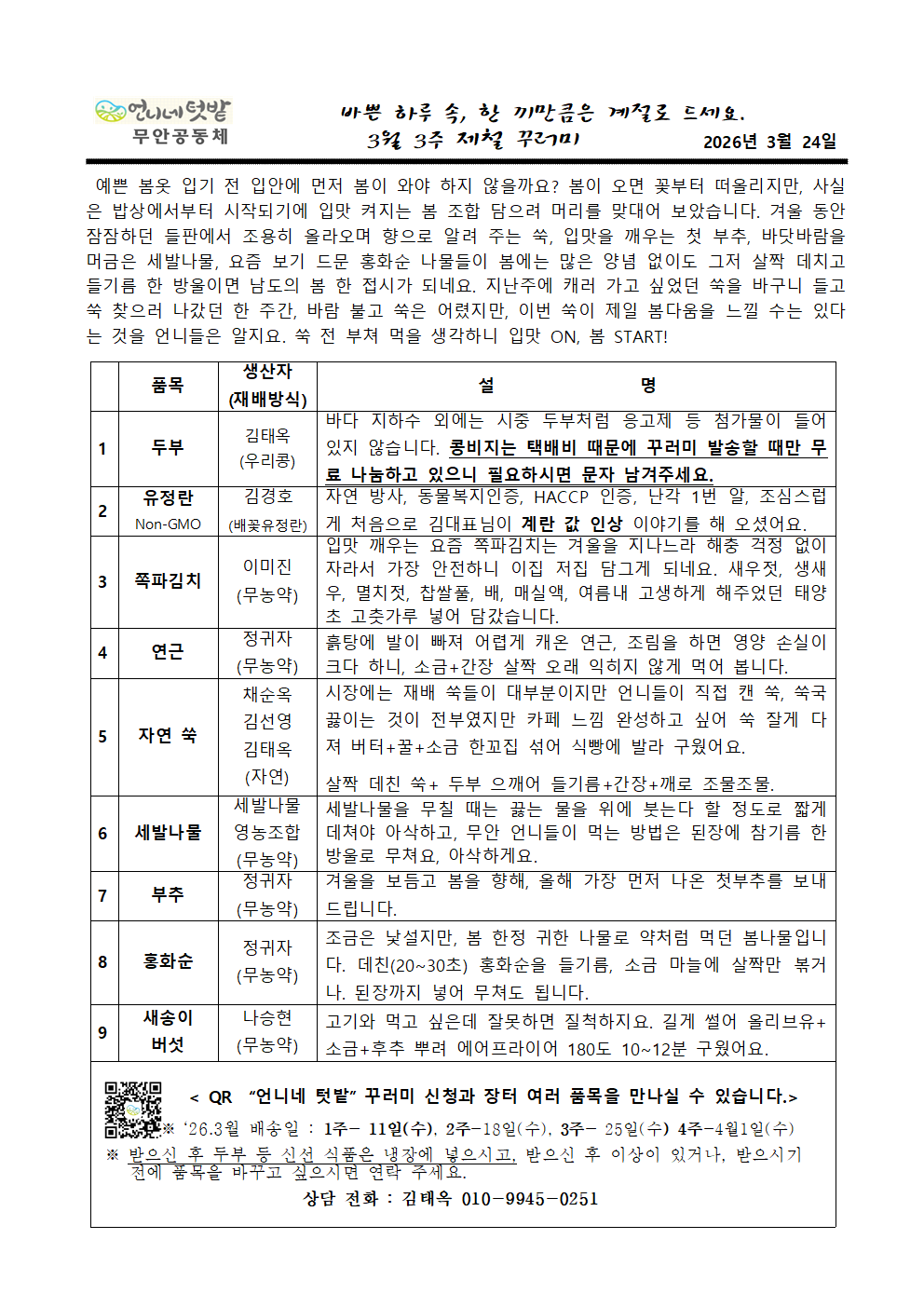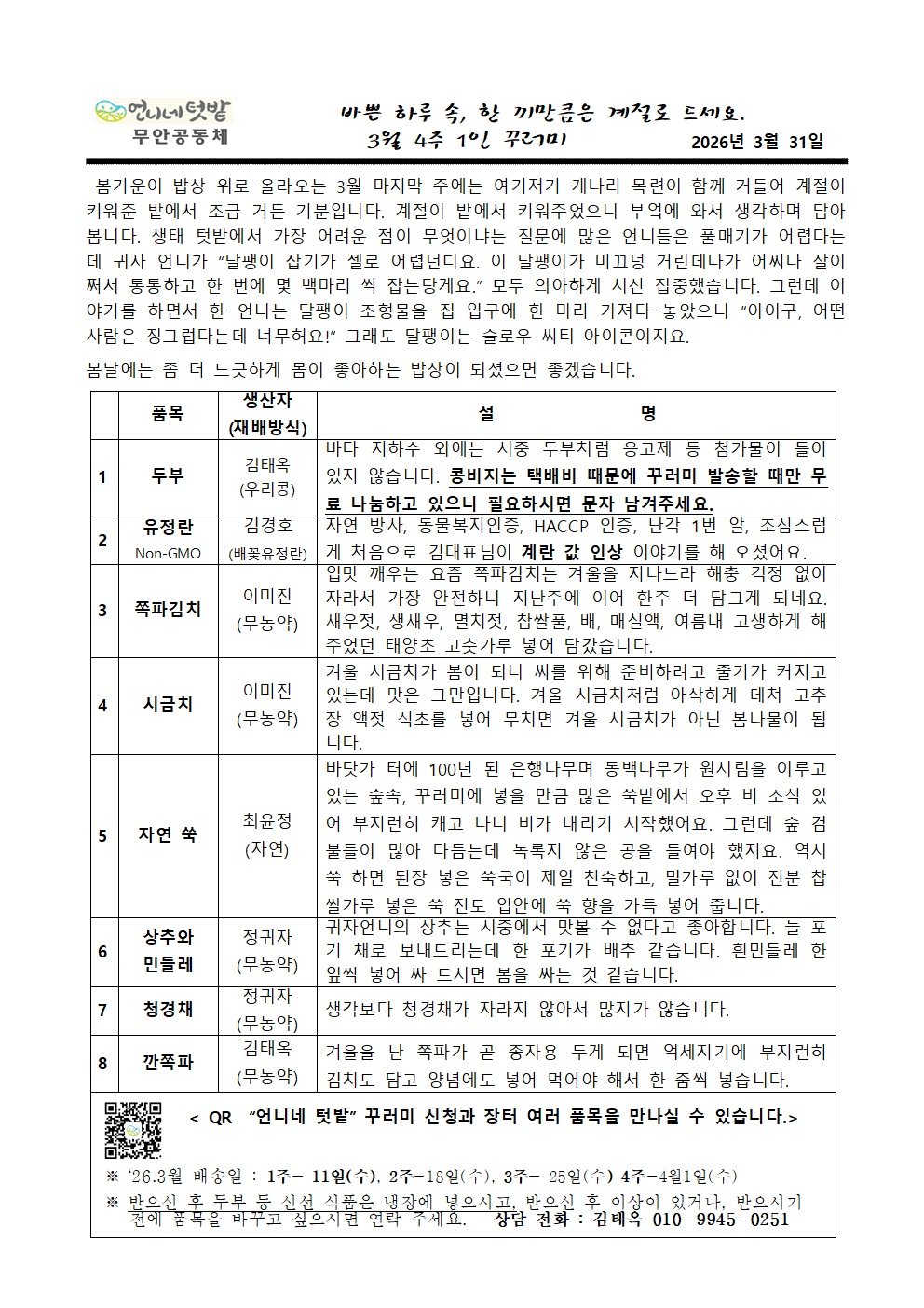 제철 꾸러미는 땅을 살리며 변화해 가는 기후 위기를 늦추게 하려는 바램이기에 여성농민에게는 삶에 힘을 실어 주며