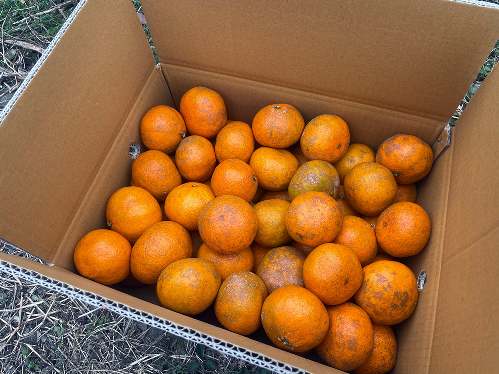친환경 귤은 약을 독하게 뿌리지 않아서 껍질에 상처가 많아요. 썩는 것보다 마르는 현상이 더 강합니다.