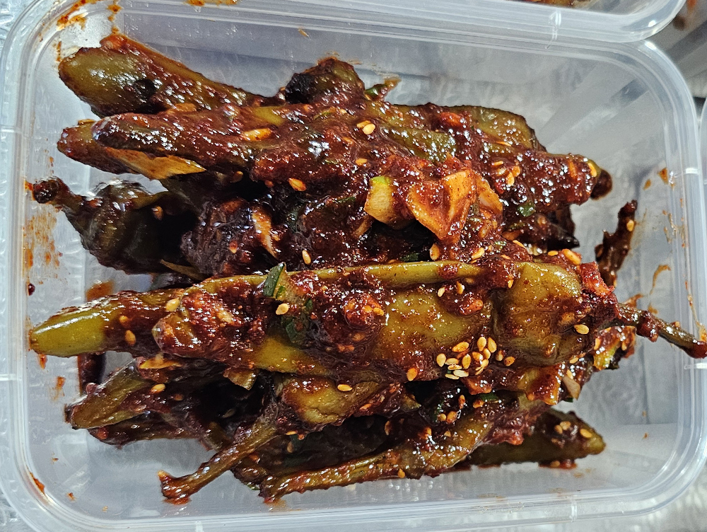 바노들 농장에서 키운 고추를 잘 삭혀서 입맛 돋는 집고추장으로 무쳤어요