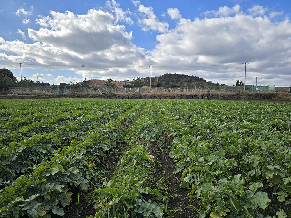 제주 동쪽은 땅이 척박해서 다양한 농사를 짓기가 어려운 환경입니다. 옛날에는 더 살기 힘들었었다는데 지금은 당근, 감자, 무 같은 월동채소들, 뿌리채소들을 주로 농사짓고 있고요. 토종 흑보리와 토종 메밀 농사도 하고 있습니다.