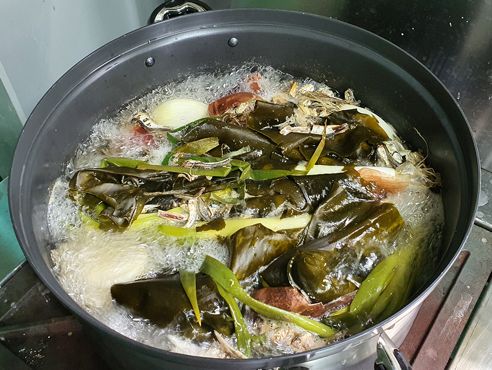 4)두미언니네 김치 양념에는 고추 액젓(멸치액젓, 새우젓), 생새우, 육수(무 대파 양파 황태 다시마 건멸치), 마늘, 생강, 무채, 양파, 청각, 갓, 찹쌀죽이 들어갑니다.