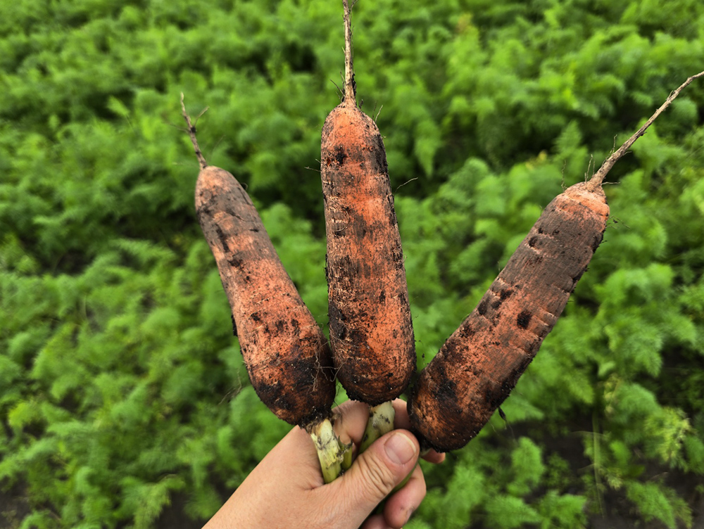 저도 도시에 살 때 당근을 박스로 구매해 본 적이 없습니다만 당근을 생산하면서 당근을 정말 풍족하게 먹고있습니다. 솎음을 할 때는 주황색 실처럼 가느다란 당근도 버리기 아까워 열심히 씻어먹었고 요즘은 뽑다가 부러뜨리거나 두 갈래 세 갈래로 자란 비상품 당근을 많이 먹고 있어요.