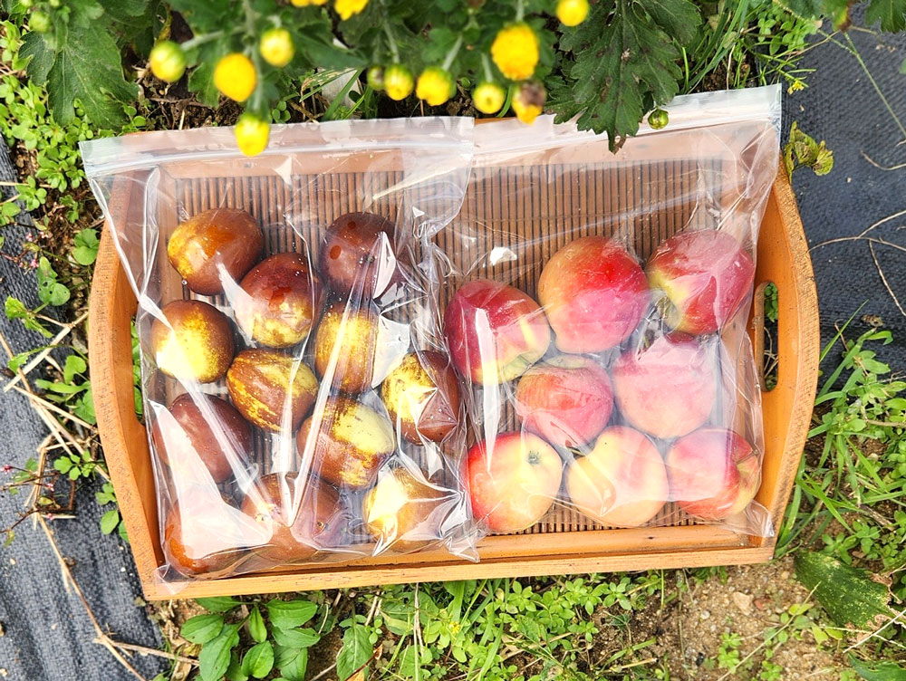 ♧ 무제초와 인증은 받지 않았으나 농약없이 은행 발효액과 미생물로 방제하여 유기농 퇴비로 농사를 지으며 잡초를 호미로 또는 손으로 농기구 이용하여 풀을 제거하고 예초기로 없애면서 고랑에는 부직포을 깔아 일손을 줄이기도 합니다.