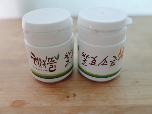 발효소금(양치 소금)은 800℃이상 고온으로 구워 불순물을 제거한 신안 천일염 소금에 KM효소를 분사하여 곱게 간 후에 발효현미가루,백토,솔잎가루,갈근가루,계피가루 등을 섞어 만든 소금입니다. 효소와 발효현미가루는 자가 제조합니다.