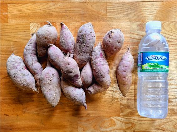▲ 한입 고구마 : 0.5리터 생수통과 비교한 모습