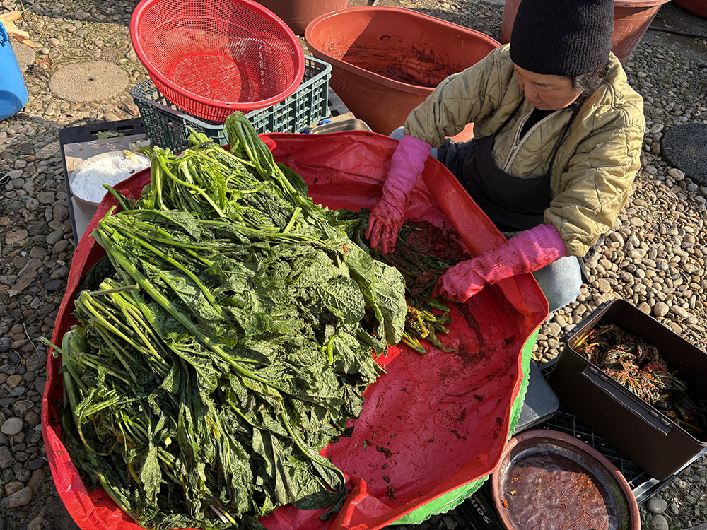 △ 청갓 김치를 버무리는 사진