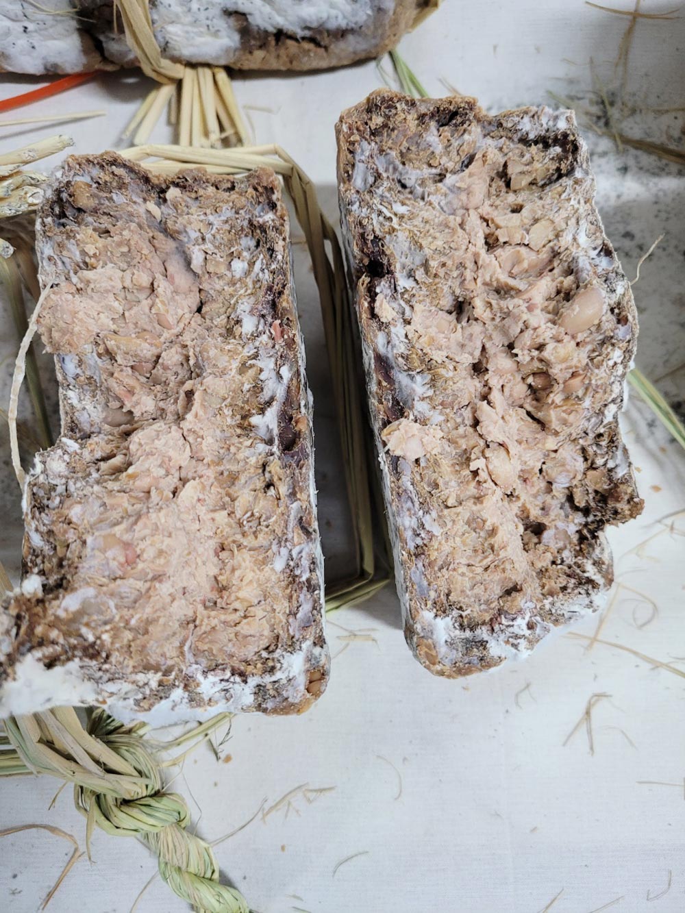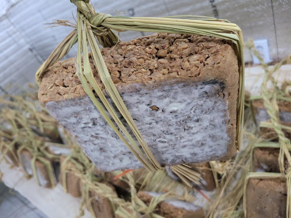 -간혹 검은색처럼 보일 수 있는데 이는 메주가 잘 띄어져서(발효되서) 나타나는 색깔로, 볏짚 바닥에서 핀 곰팡이입니다. 솔 같은 걸로 씻어 담그면 맛난 된장이 됩니다.