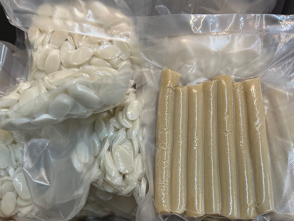 모를 내서 심고 제초제 없이 우렁이를 넣어서 잡초를 제거하고 자연이 함께 키워낸 무제초제 햅쌀로 만든 현미 가래떡과 떡국떡입니다.