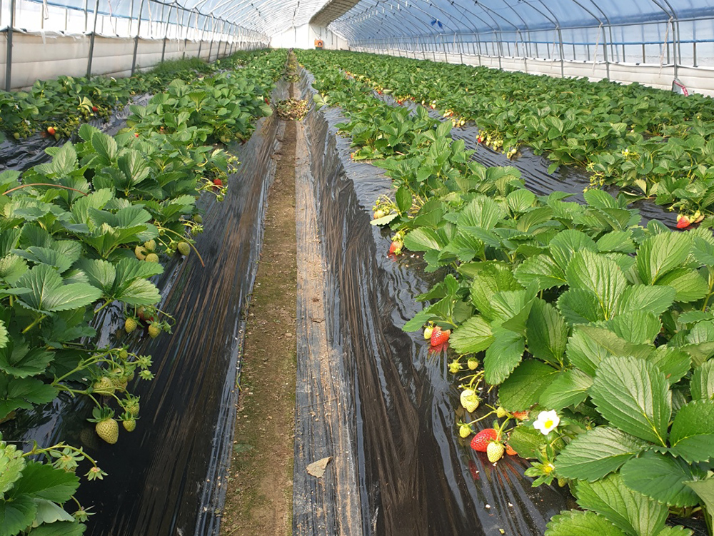 요즘은 많은 딸기 농가들이 배드를 만들고 배양토에서 딸기를 많이 키웁니다.