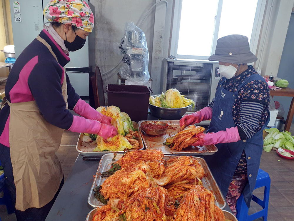 언니들이 올해 기후재난으로 배추를 서너번 심었습니다.