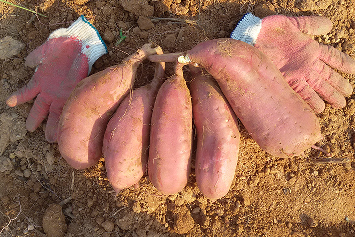 벌레 죽이는 약을 전혀 하지 않아 약간의 벌레 먹은 흔적이 고구마에서 발견될 수 있습니다. 그 부분만 도려내면 먹는 데 상관없으니 참고해주세요.