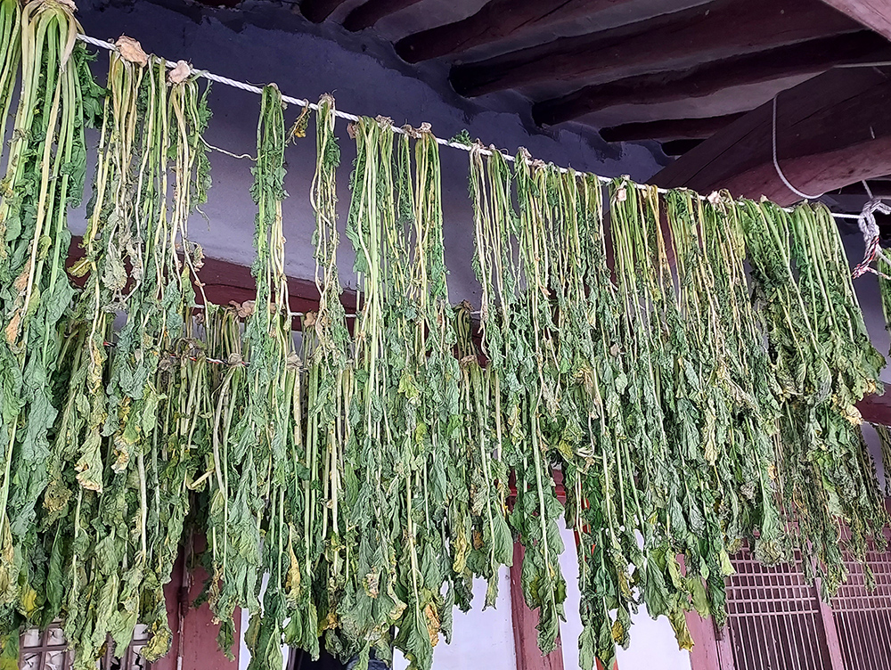 무청을 처마 밑에 걸어서 말려 놓은 후 필요할 때마다 삶습니다. 작년까지는 큰 백솥을 마당에 걸어 놓고 나무를 때서 삶았으나 올해는 좀더 일찍 삶기시작하다보니 젤 바쁜 가을철과 겹쳐 나무불과 가스불에 삶는 것을 병행했습니다. 좀 더 부드럽게 삶기위해 쌀뜨물을 추가했습니다.