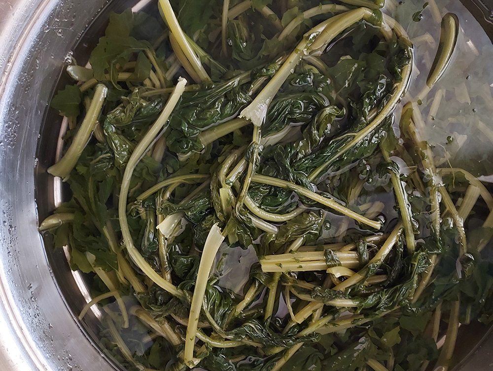 삶은 무청시래기를 한 번 쓸만큼 소분해서 얼려 놓으면(물기를 꽉짜서 얼리는 것보다 약간의 물기가 있는 상태로 얼리는 것이 장기보관에는 좋음) 국거리가 어중간할 때 혹은 속 편한 아침식사 국거리로는 배추우거지와와 더불어 양대산맥이라 할 수 있습니다.