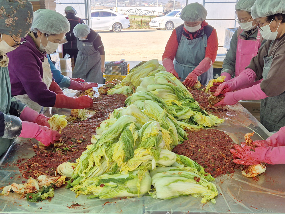 김장 채소거리를 재배하느라 언니들이 오늘도 열심히 땀 흘려 농사짓고 있어요.