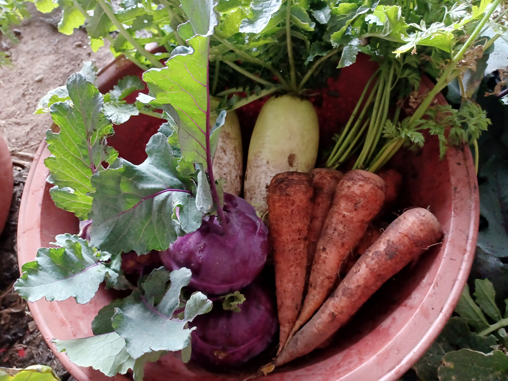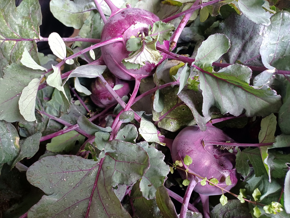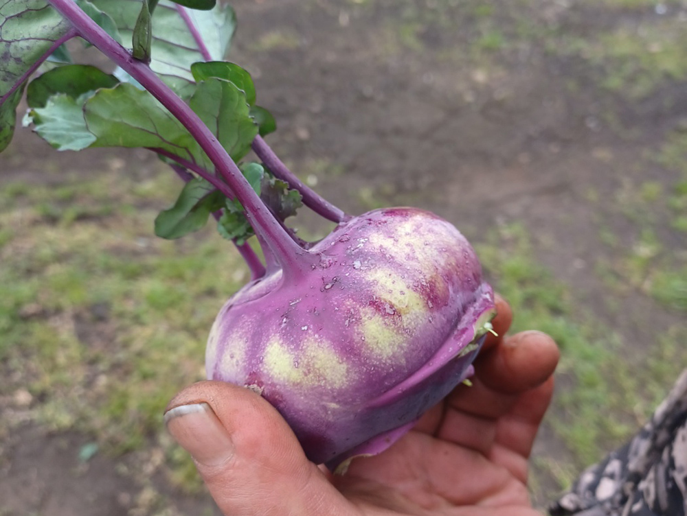 제주는 겨울에 주로 월동채소가 수확됩니다. 양배추, 콜라비, 브로컬리, 당근, 월동무 등이 요즘 수확됩니다. 뜨거운 여름에 주로 모종을 내고 밭에 모종을 정식합니다. 고온기에 모종을 내고 정식하다보니 농민도 힘들지만 작물도 힘에겨워 살아남기가 어려울때가 있습니다. 늦게나마 모종을 정식하고 아직까지 잘 견뎌준 콜라비입니다.