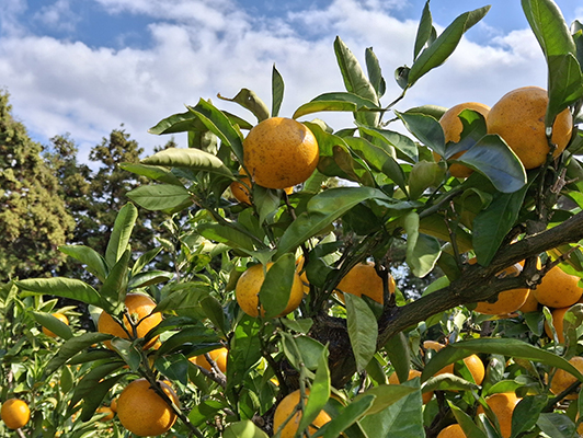 노지 감귤은 햇빛과 비바람을 고스란히 맞고 자라요. 맑으면 맑은 대로 흐리면 흐린 대로 일 년 내내 가뭄이든, 장마든, 폭염이든, 한파든, 노지에 서 있는 감귤 나무와 그 나무에 달린 감귤 열매는 피할 곳이 없어요.