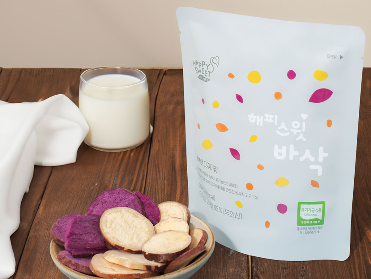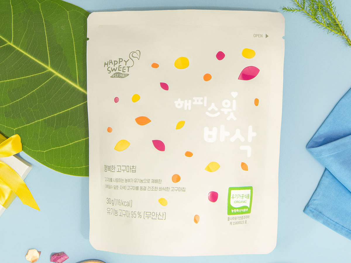 행복한고구마 농장의 달수, 달호, 자색 유기농 고구마를 기름 없이 동결건조해 만든 프리미엄 고구마칩입니다. 유기농 설탕과 국내산 정제염, 비타민 C, 유기농 인증을 받은 국내산 고구마로 만들었습니다. 담백하고 바삭한 식감은 물론, 세 가지 고구마의 고운 색감으로 요거트와 제과·제빵 토핑에 더욱 잘 어울립니다.