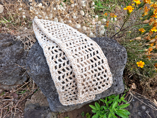 삼베실로 뜬 제품은 미세 플라스틱이 나오지 않아 바다와 지구 환경, 결국 사람에게 도움이 돼요. 삼베실은 항균력이 있지만 계속 적셔두는 것보다는 쓰고 나서 걸어 말려 주세요. 가끔 햇빛 소독을 해주거나 행주와 함께 삶아도 됩니다.