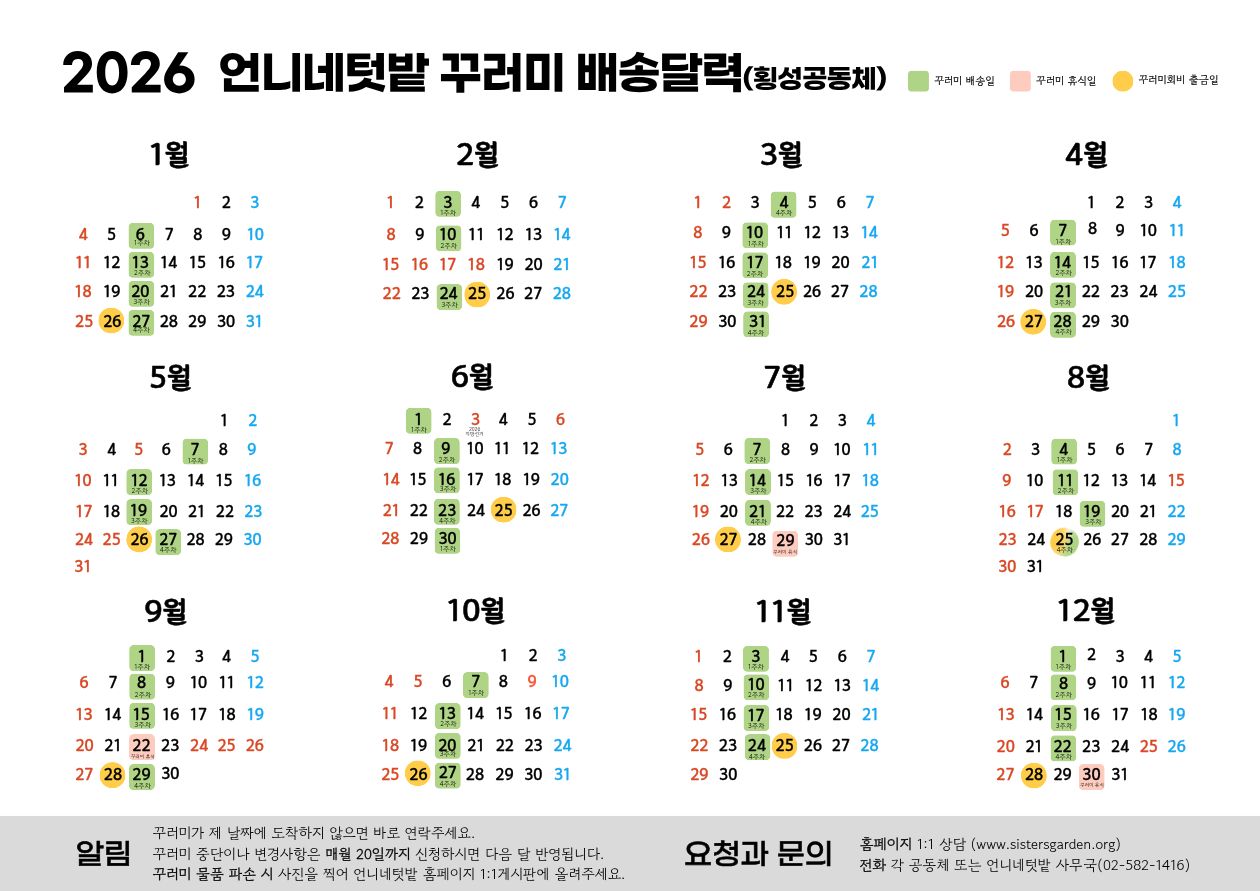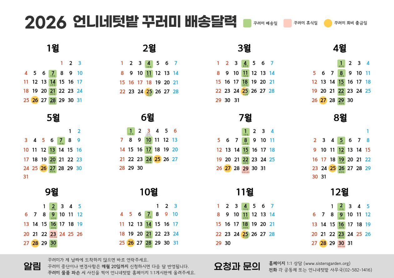 2026년 언니네텃밭 꾸러미 배송달력 입니다 : )