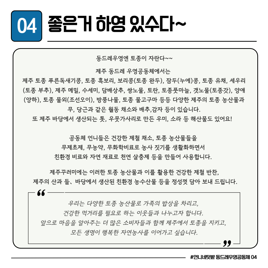 ★ 제주 동드레우영공동체 언니들 물품 구입은 여기서!