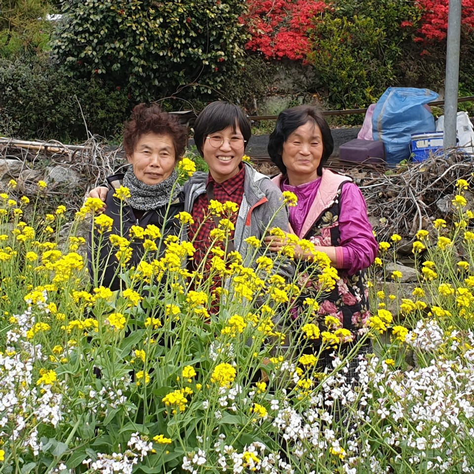 꾸러미를 싸고나니, 작업장앞 장다리꽃이 보여 절로 사진을 찍게 된다며~ 찰칵~! 꽃보다 언니들 미소가 더 예쁘죠?