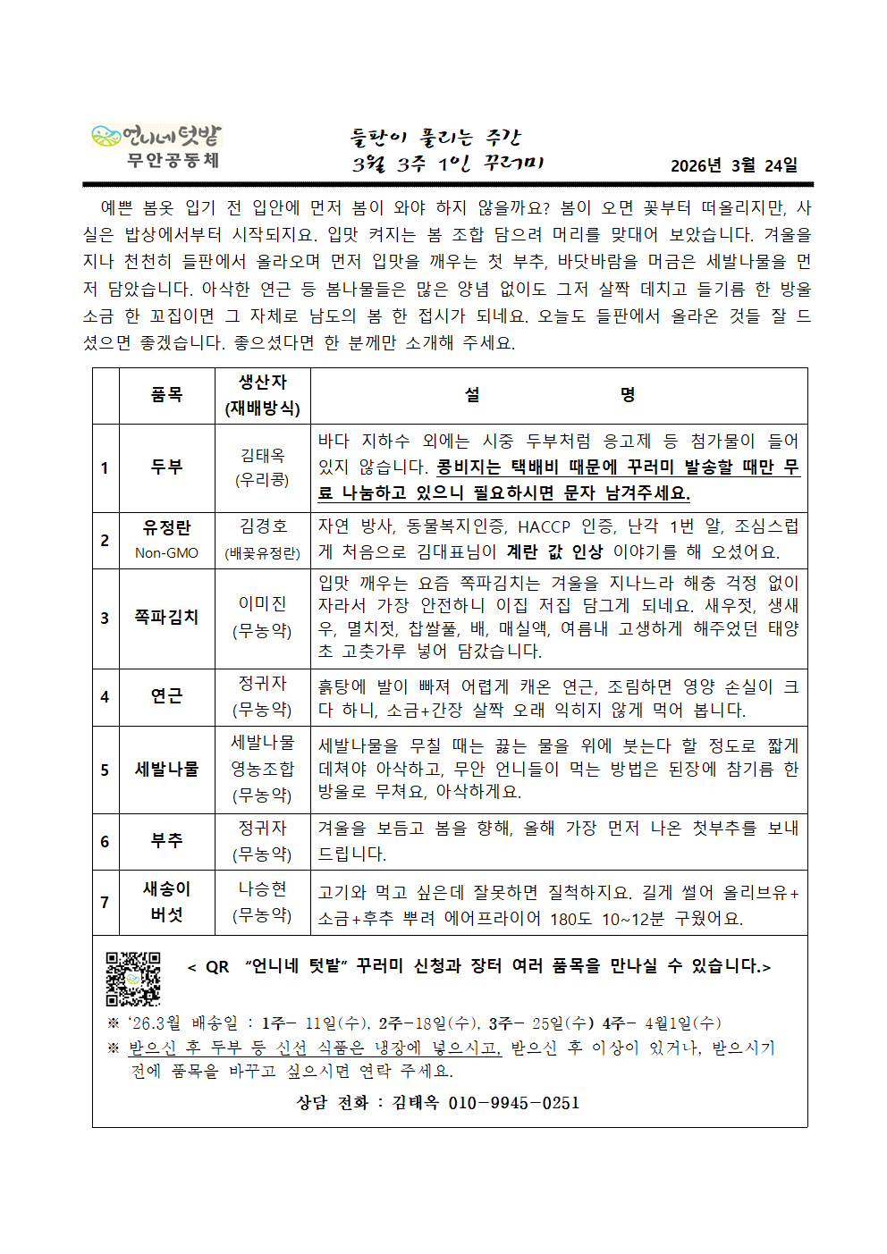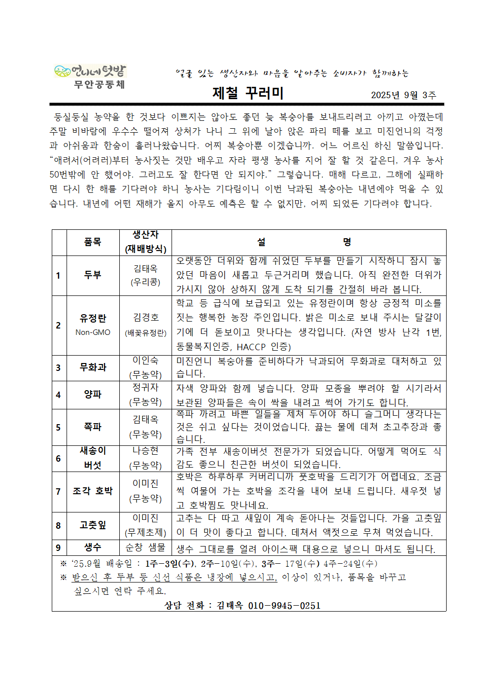 제철 꾸러미는 땅을 살리며 변화해 가는 기후 위기를 늦추게 하려는 바램이기에 여성농민에게는 삶에 힘을 실어 주며